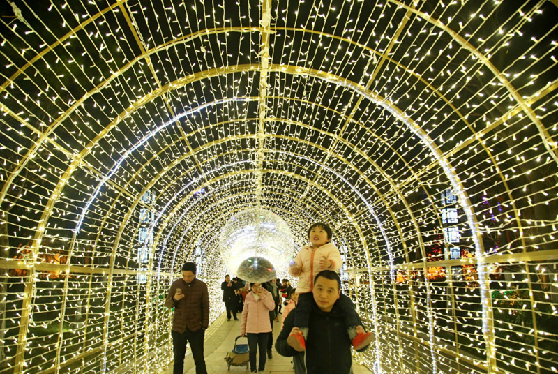 3月1日,游客在山东省邹平县元宵花灯展上赏灯。(董乃德 摄)