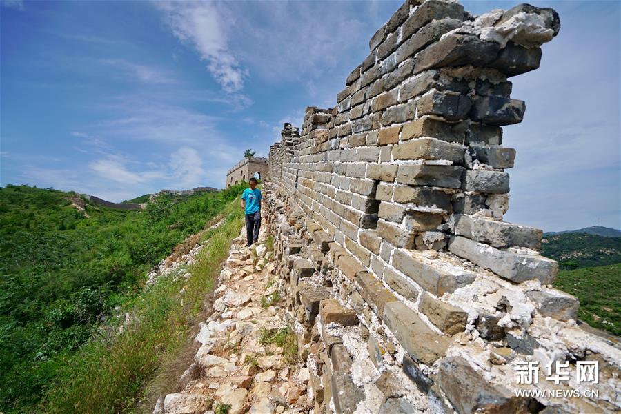 9月4日,李德旺在徐流口段长城上查看长城墙体。