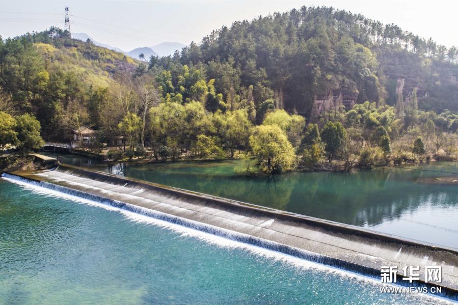 这是入选2020年度世界灌溉工程遗产名录的白沙溪三十六堰(2019年3月13日摄,无人机照片)。新华社发(中国国家灌排委员会供图)